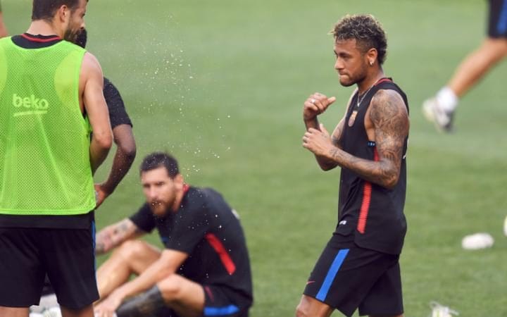 Ocurrió en el entrenamiento del Barça hoy en Miami, Neymar Jr ha tenido un conflicto en el partidillo que han celebrado con el portugués Nelson Semedo.